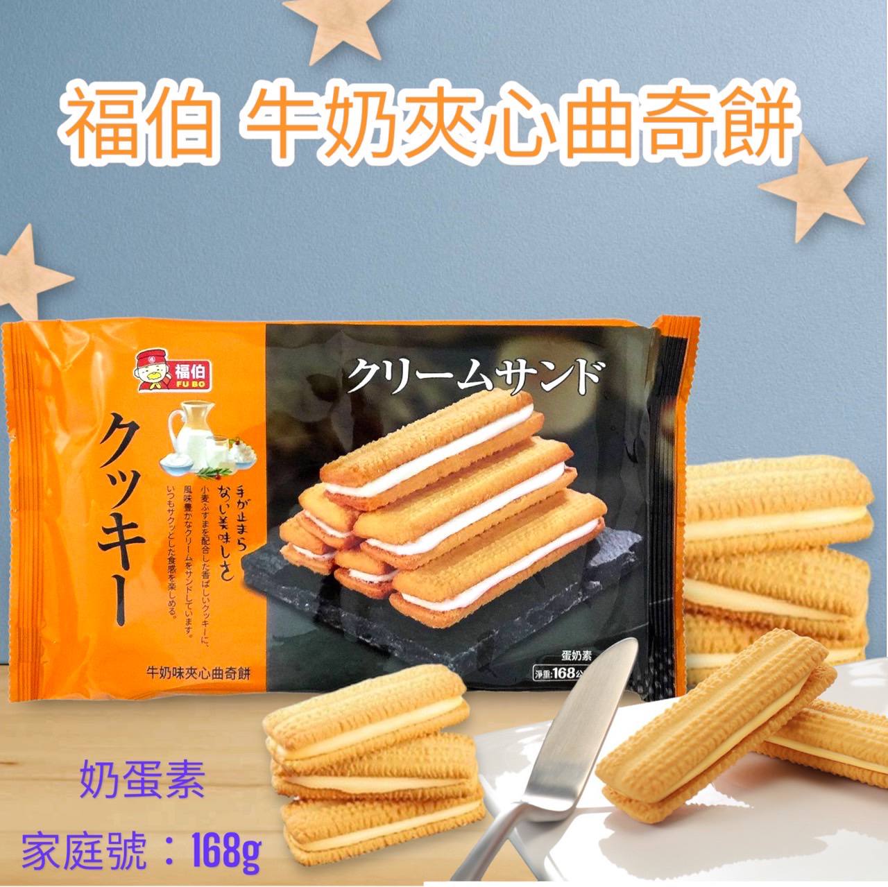 福伯 夾心曲奇餅 牛奶 168g