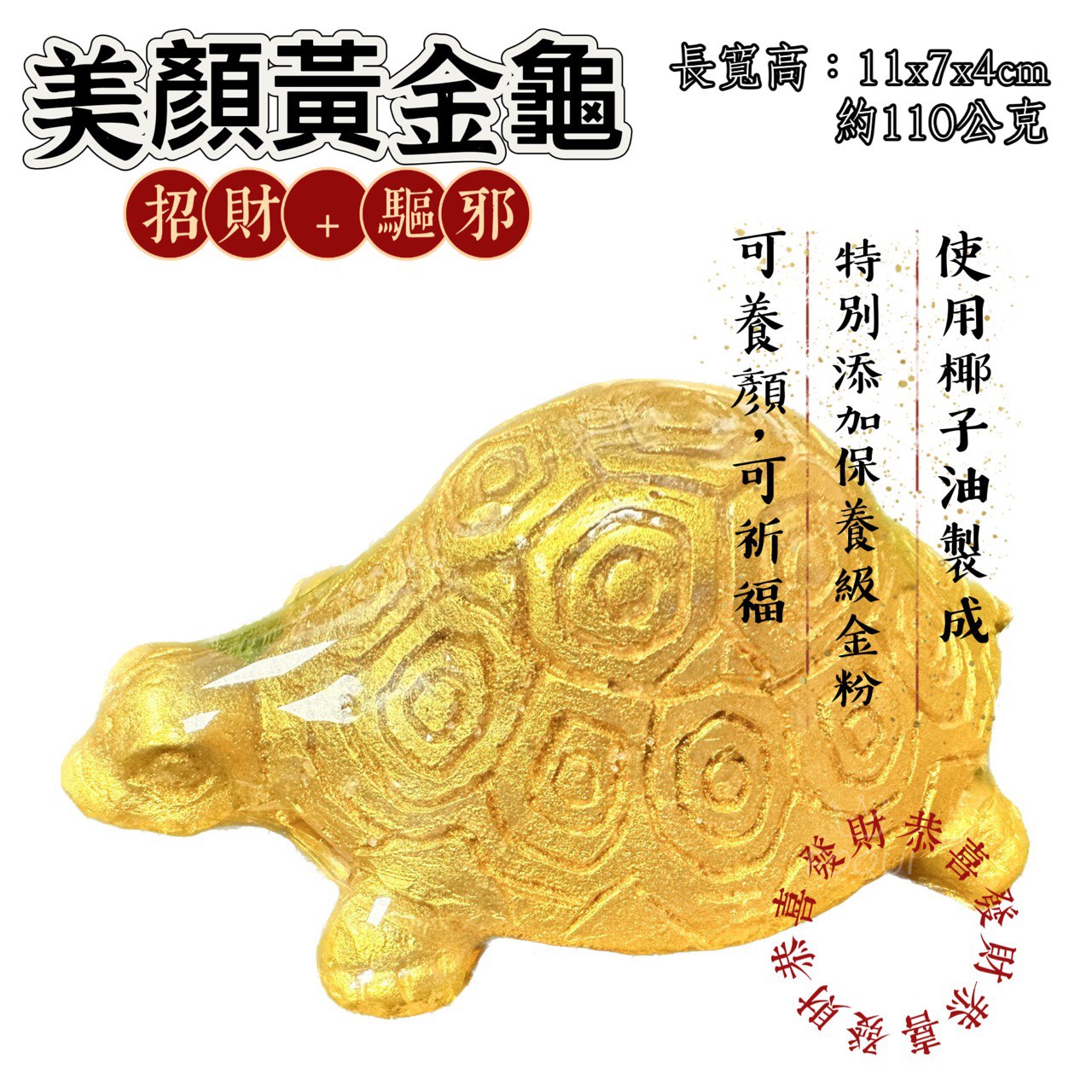 台灣製造 100%金箔金龜皂 美顏黃金龜 110G