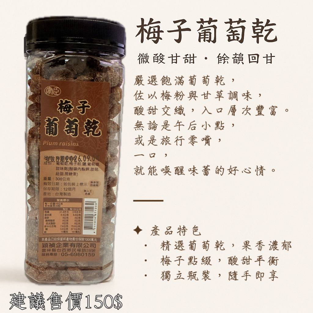 穎禎 梅子葡萄乾 罐裝 300g*12瓶