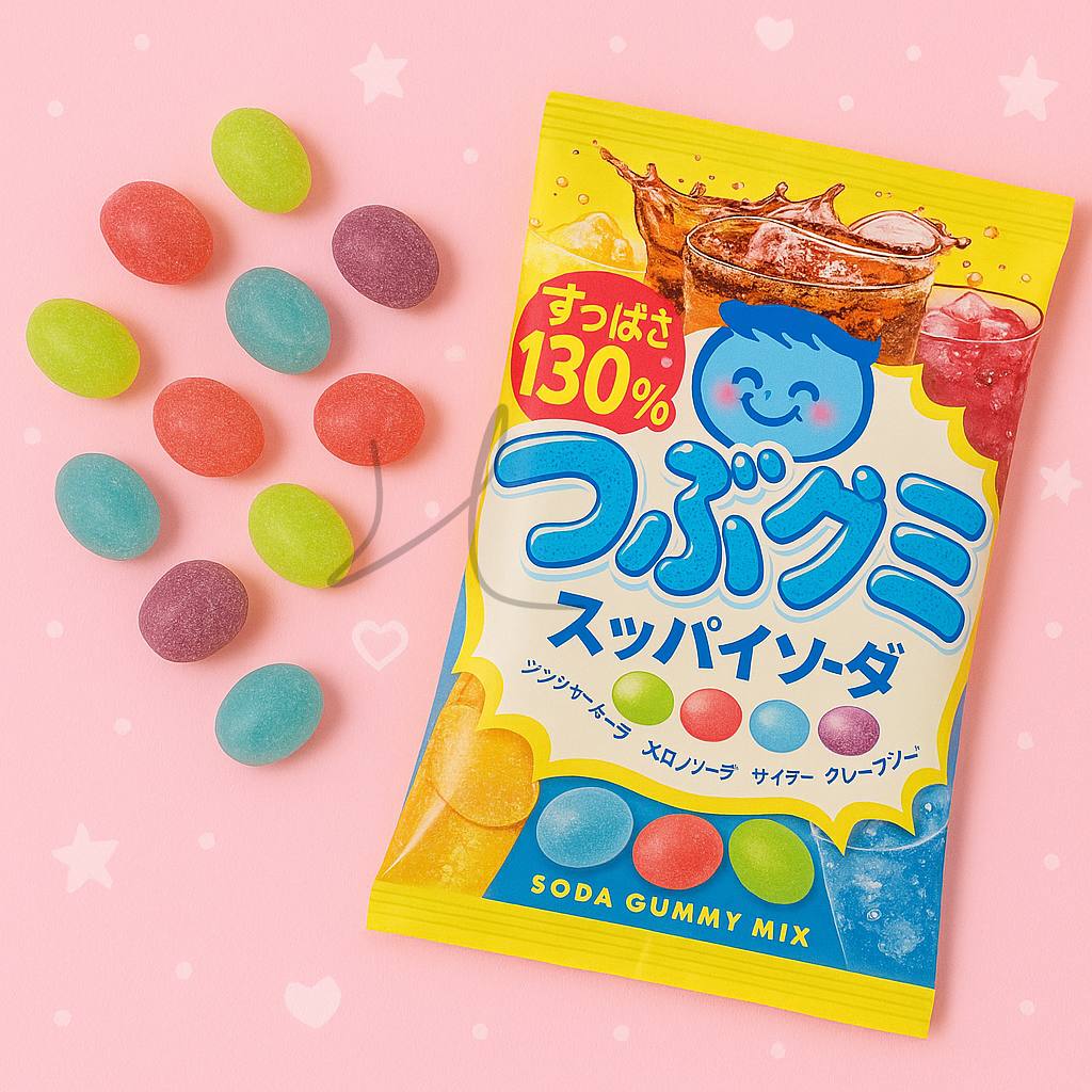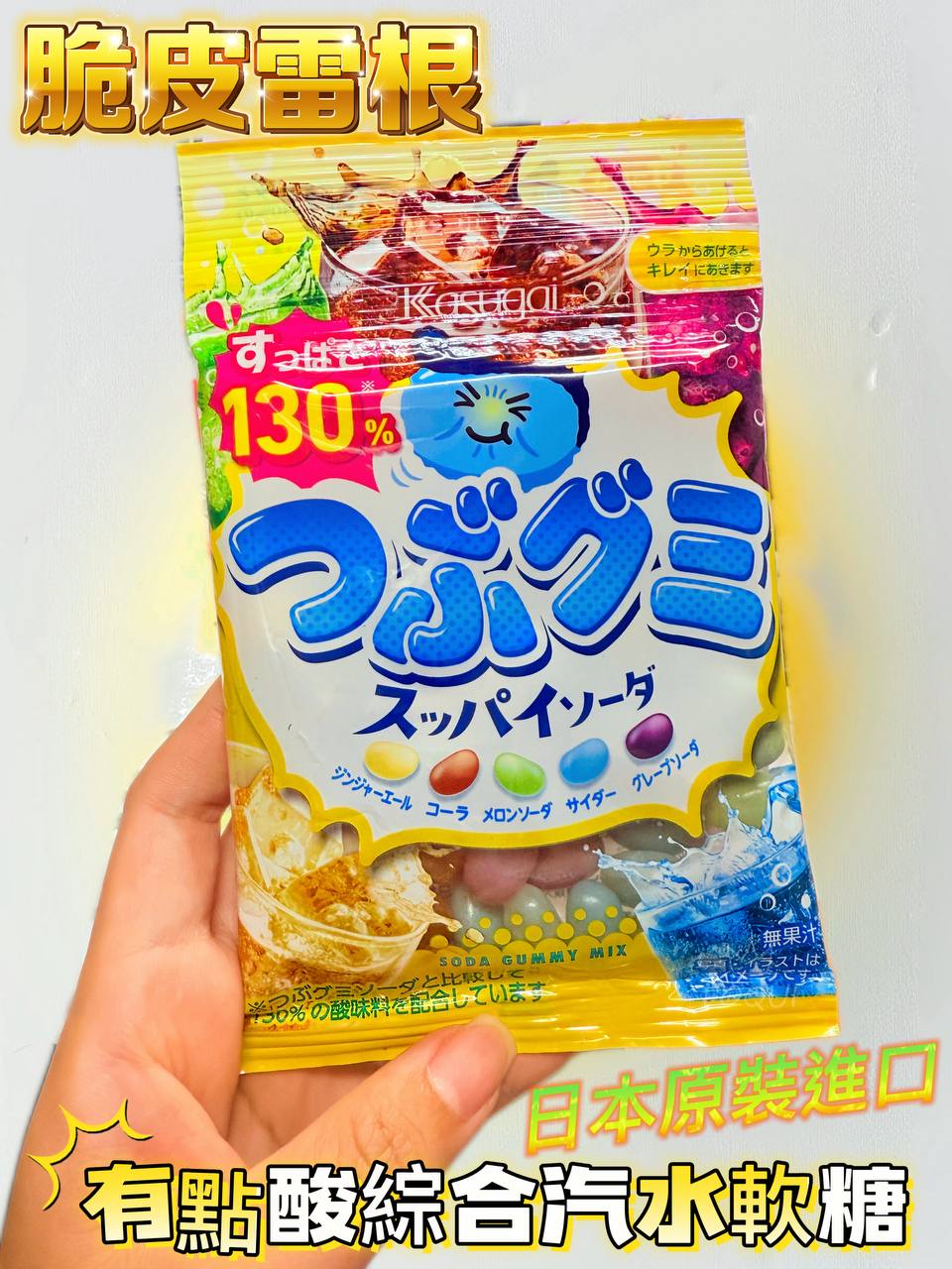 特別版!!KASUGAI 菓子のカスガイつぶグミ スッパイソーダ(Tsubu Gummy Sour Soda)脆皮綜合汽水軟糖✨ すっぱさ130%:酸度提升到130%!!比一般つぶグミ更酸、更帶汽水感。一包就有五種:黃色💛薑汁汽水(Ginger Ale)紅色❤️可樂(Cola)綠色💚哈密瓜蘇打(Melon Soda)藍色🩵Cider 藍色汽水紫色💜葡萄汽水(Grape Soda)小編好愛這種糖果😚😚😚 • 容量:約 70g • 原產國:日本製