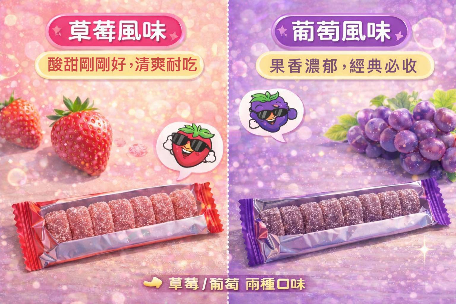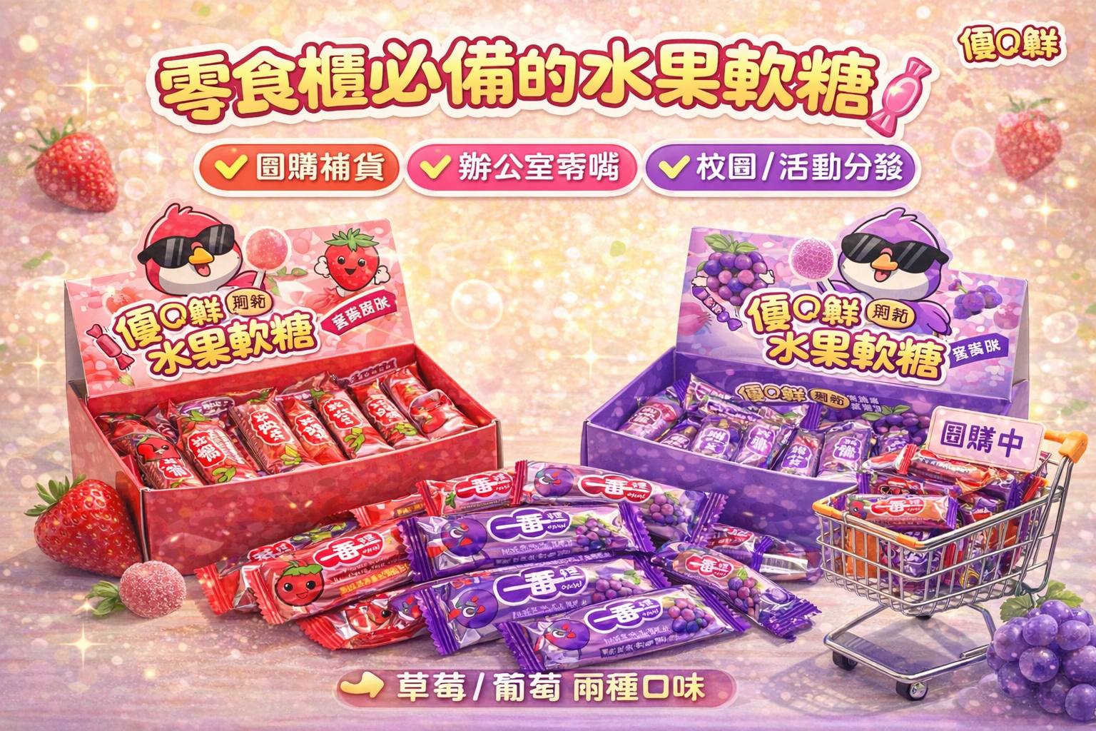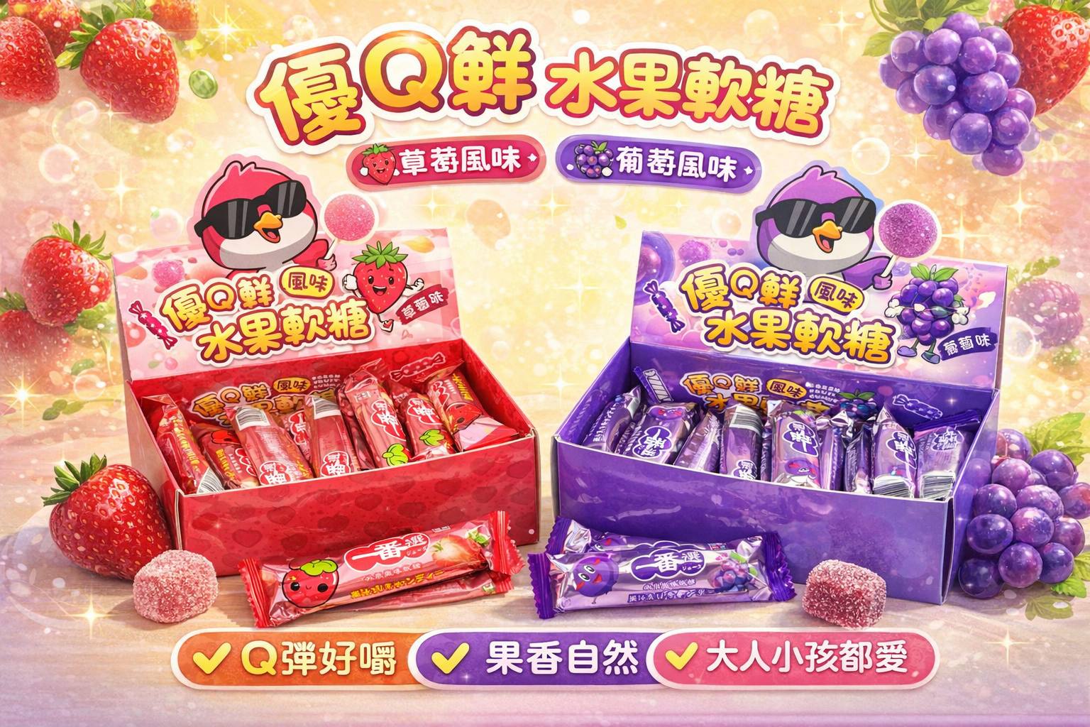 優Q鮮 水果軟糖 草莓 / 葡萄 24條(336G)*16盒 賞味期限2026.10.10