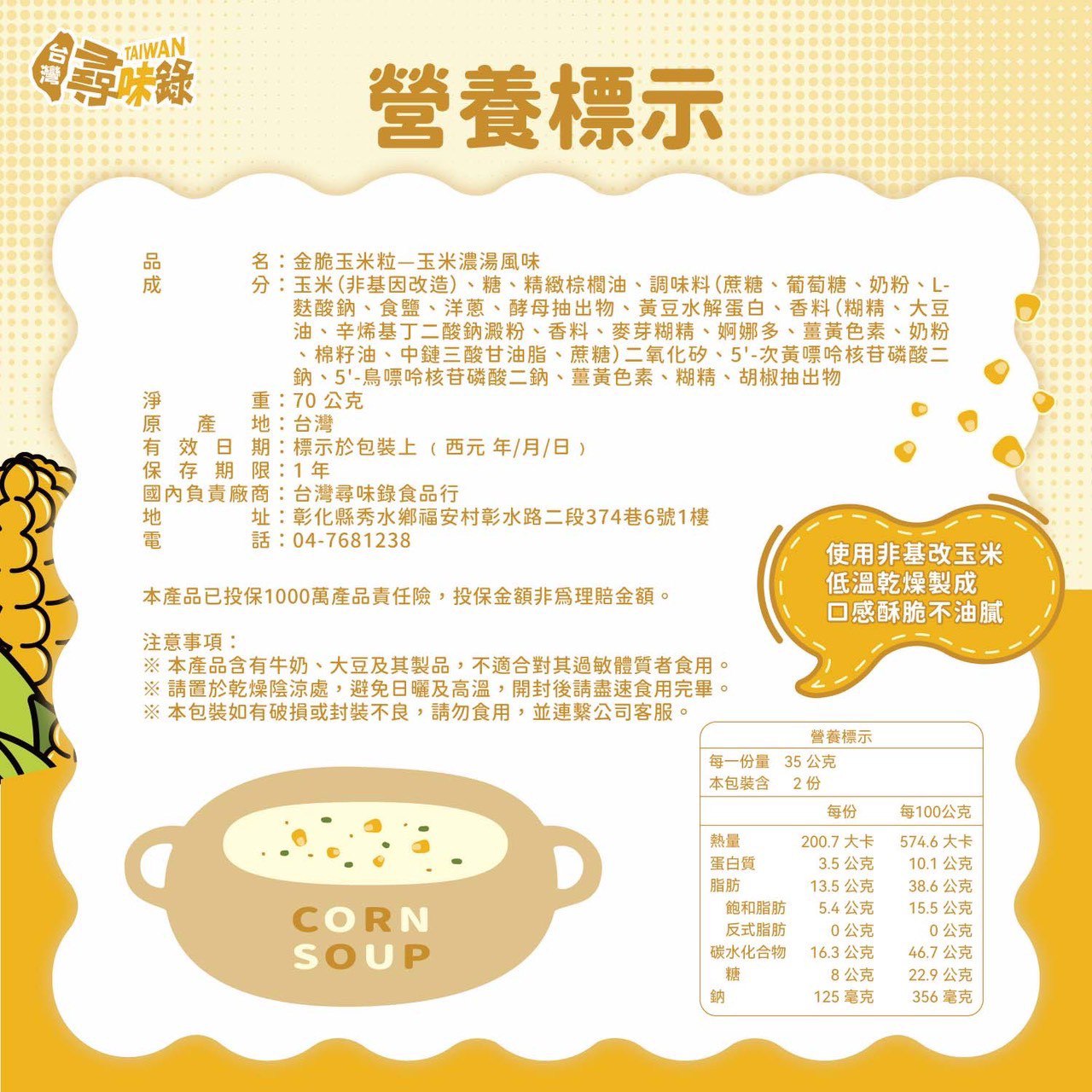 選用台灣新鮮非基改甜玉米粒