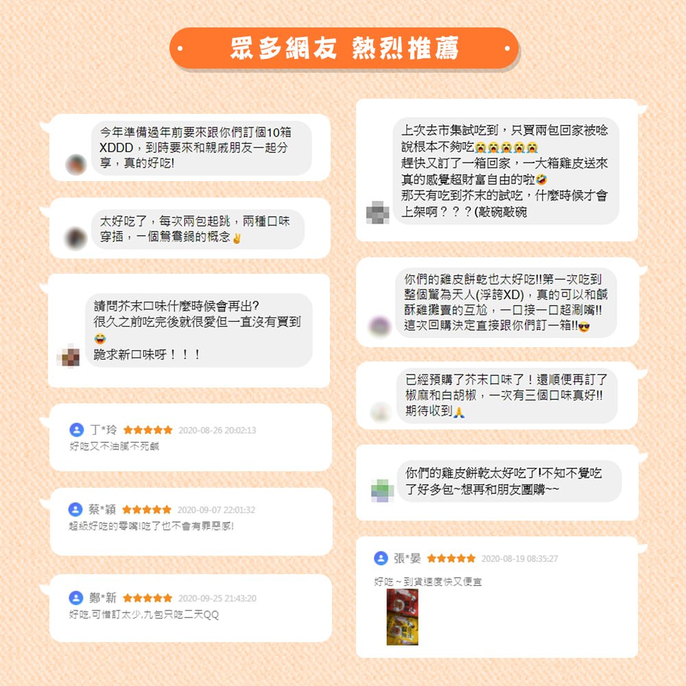 闆娘上次跟朋友購買來試吃之後真心愛上這雞皮餅乾